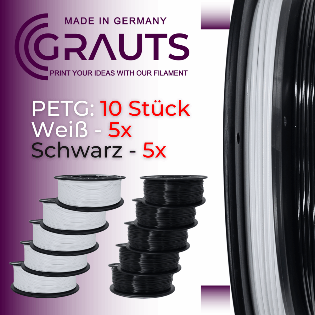 Unser PETG-Filament (Polyethylenterephthalat-Glykol) vereint die besten Eigenschaften von PLA und ABS. Es zeichnet sich durch seine besonders hohe Transparenz und niedrige Viskosität aus. Dieses wird aus wird aus Rohöl hergestellt. Da der Thermoplast amorph ist, gibt es darüber keine thermischen Reserven wie bei teilkristallinen Polymeren. E-Modul und Festigkeit sind bei normalen Temperaturen gut. Die Kerbschlagzähigkeit ist moderat. Die Wasseraufnahme ist gering. PET ist aber sehr empfindlich gegen hydrolytischen Abbau bei der Verarbeitung und muss vorgetrocknet werden. Dieses ist ideal für funktionale Bauteile, Gehäuse und transparente Anwendungen.